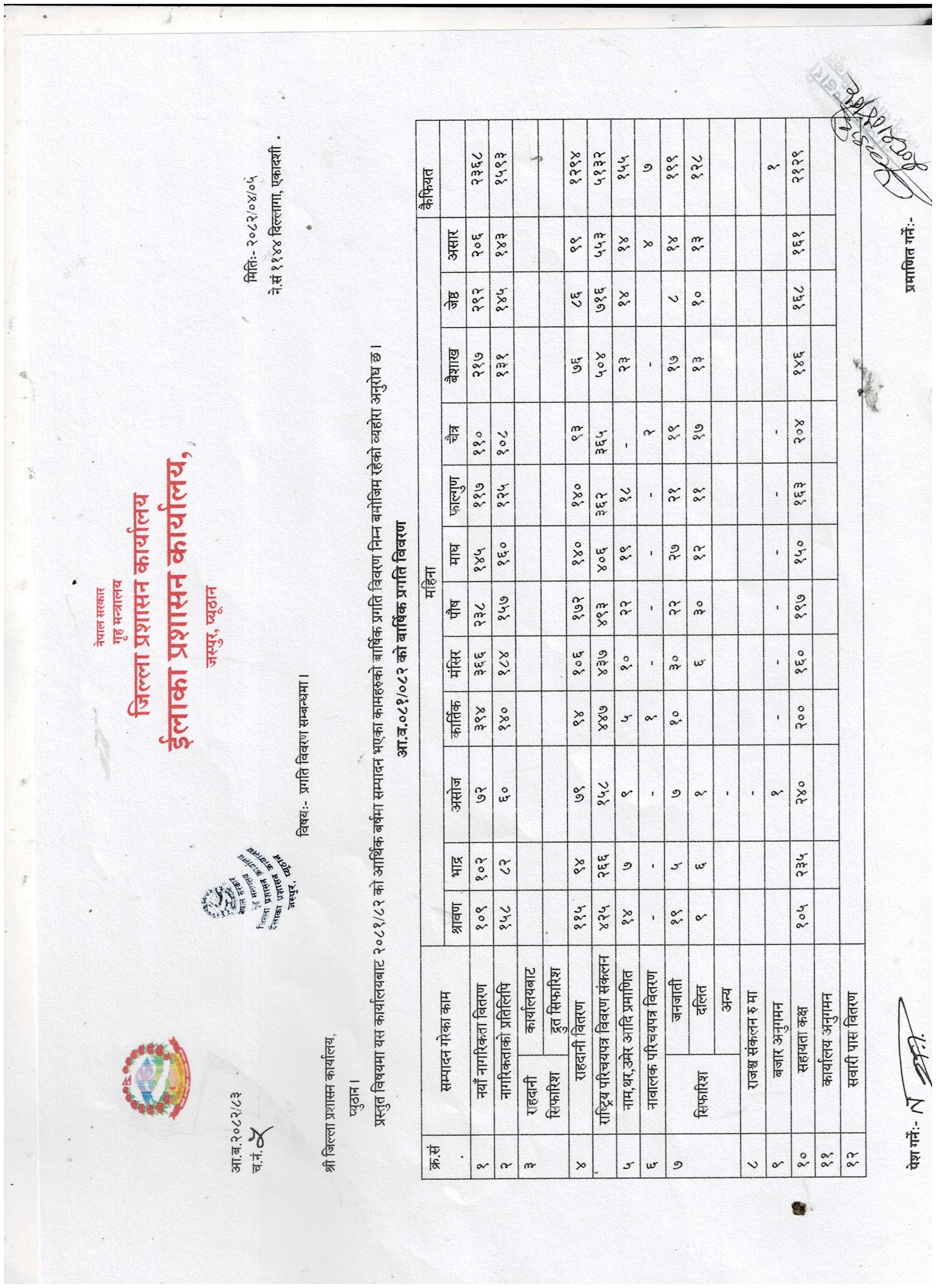 श्रावण देखी कार्तिक महिना सम्मको मासिक प्रगति विवरण