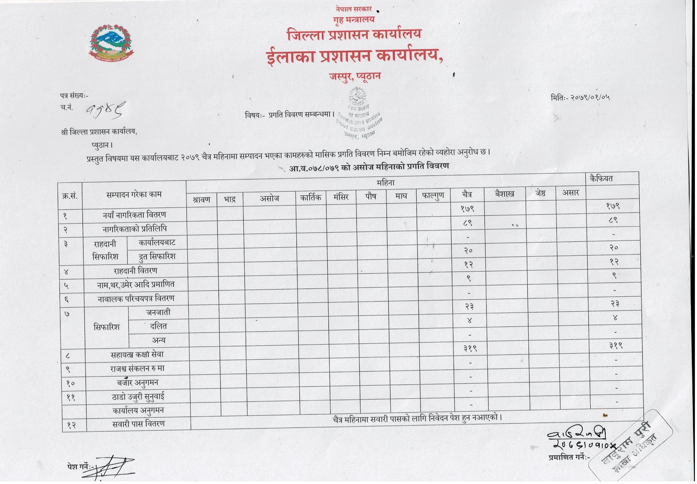 चैत्र महिनाको मासिक प्रगति विवरण