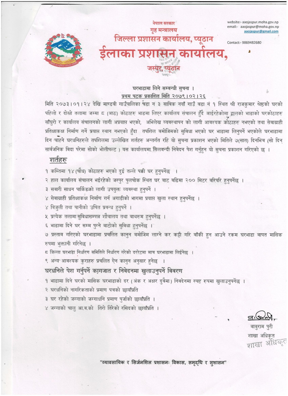 © सर्वाधिकार सुरक्षित ईलाका प्रशासन कार्यालय, जस्पुर, प्युठान