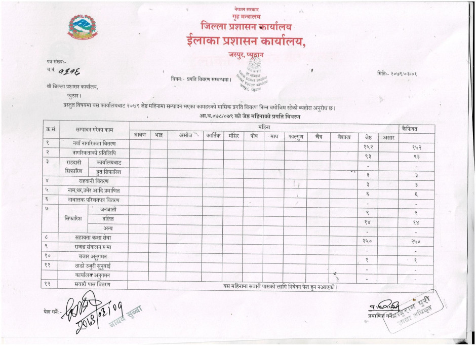 जेष्ठ महिनाको मासिक प्रगति विवरण