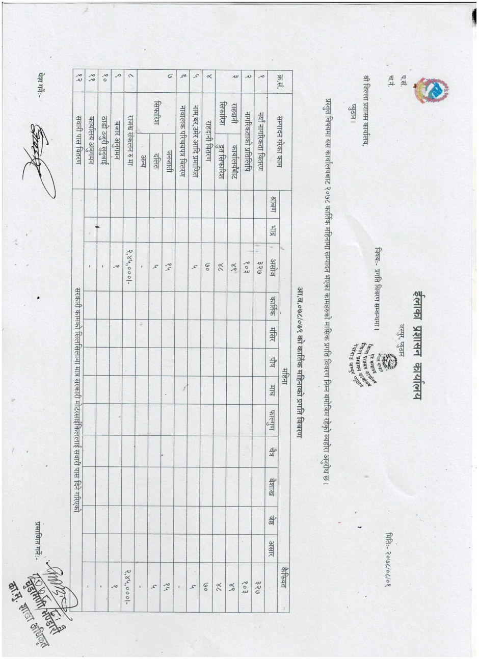 २०७८ कार्तिक महिनाको मासिक प्रगति विवरणको सूचना जानकारी गराईएको वारे