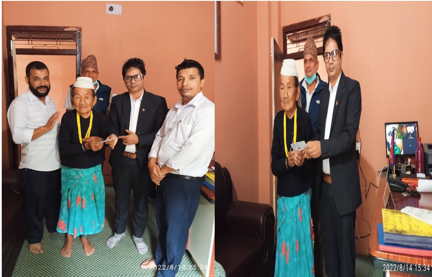 ८६ वर्षको आमा कलावती कुमाललाई नागरिकता प्रदान गर्दै कार्यालय प्रमुख बाबुराम पुरी