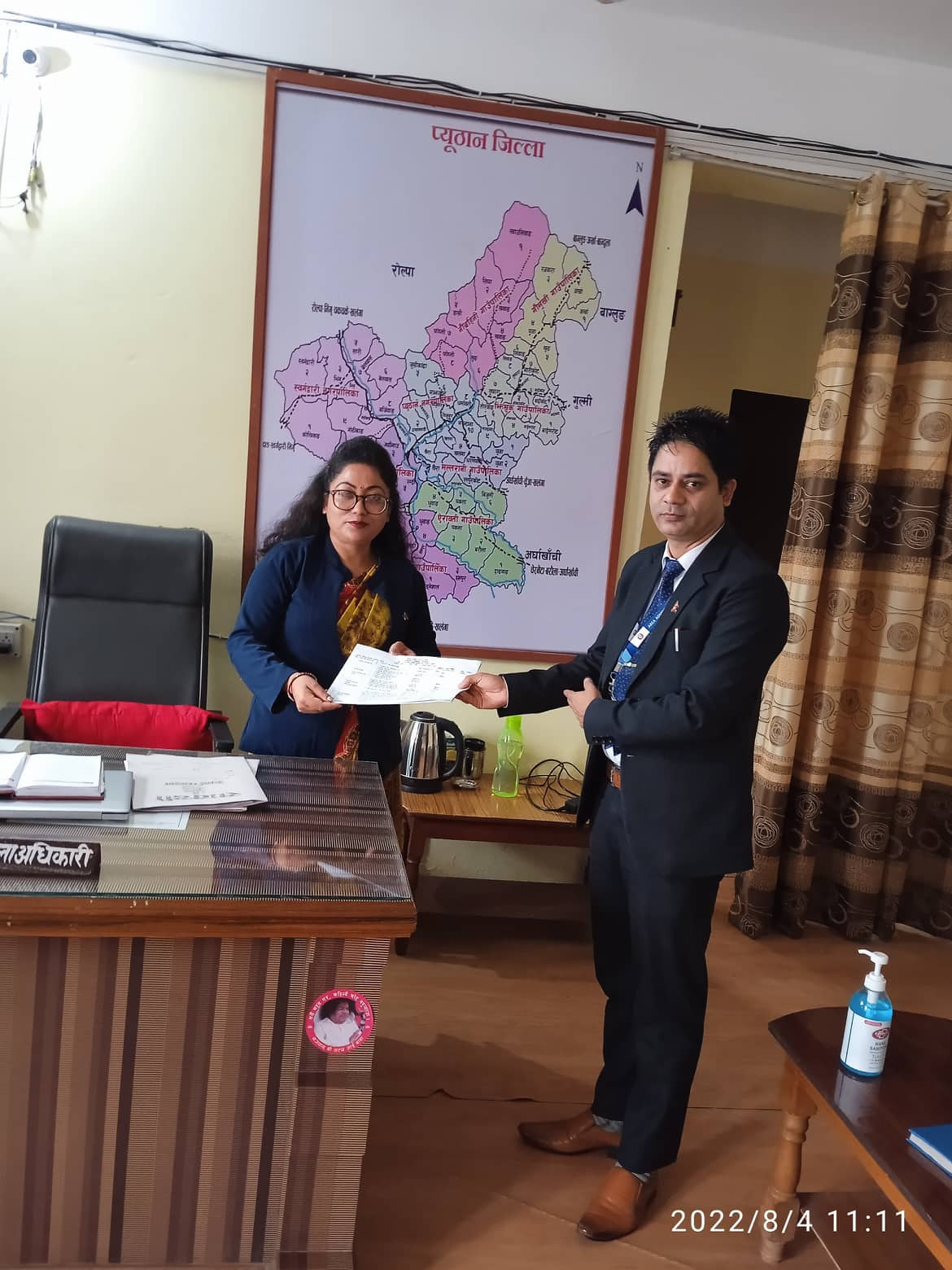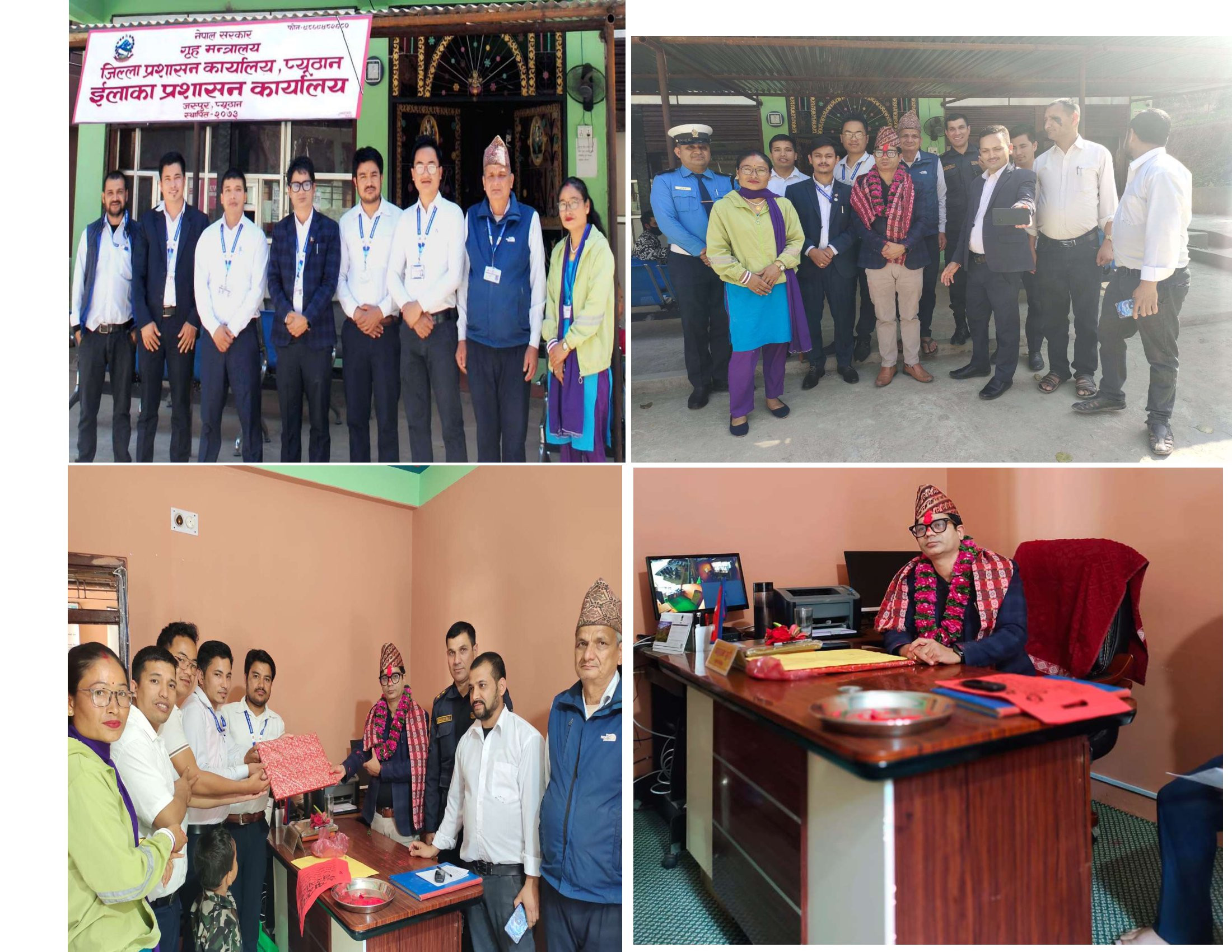 श्रीमान प्रमुख जिल्ला अधिकारी सुनिता नेपालज्यू कार्यालय निरिक्षणको शिलसिलामा एवंम उद्योग बाणिज्य तथा आपूर्ति मन्त्रालय लुम्बिनी प्रदेशका श्रीमान सचिव हेमराज सुवेदीज्यू को कार्यालय भ्रमणको शिलसिलामा ।