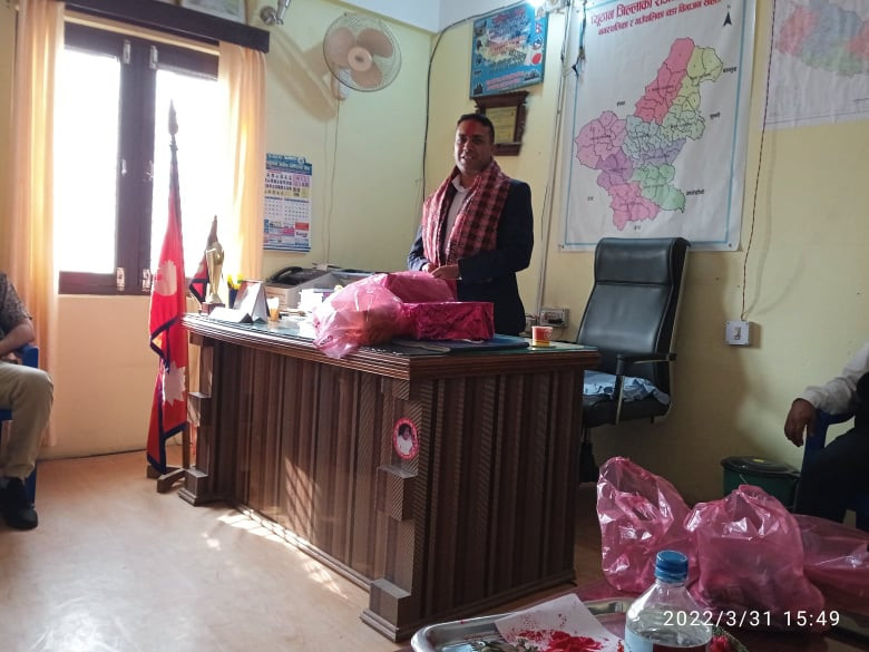कार्यालय प्रमुख श्री मेघ प्रसाद पाेख्रेलज्यूलाई स्वागत गरिदै ।