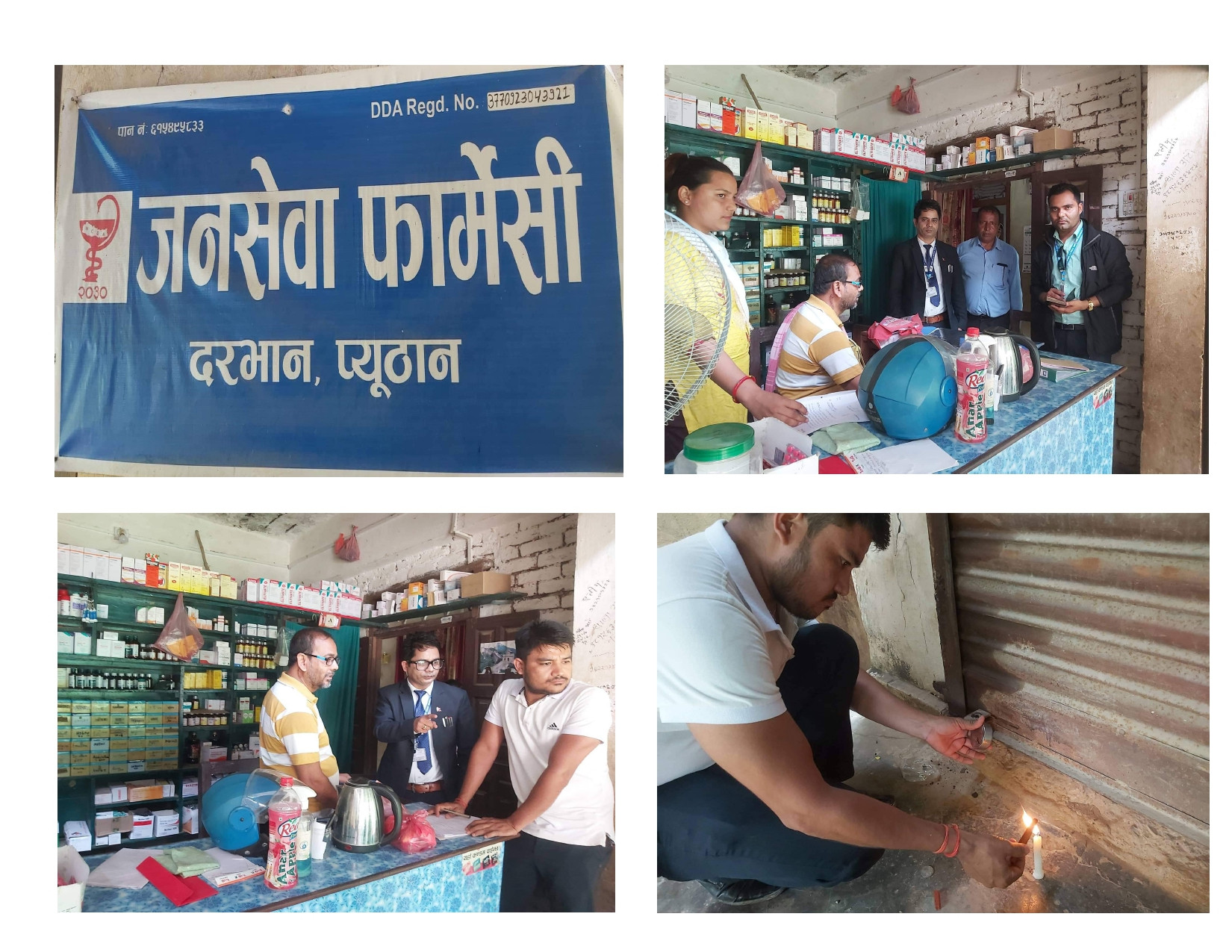 Medical certificate बिना नक्कली स्वास्थ्यकर्मी भारतीय नागरिक ककंन लस्कारले सरुमारानी २ दर्भानमा संचालन गरेको जनसेवा फार्मेसी निरीक्षण गरी सिल गरियो । २०७९।०५।१५ गते