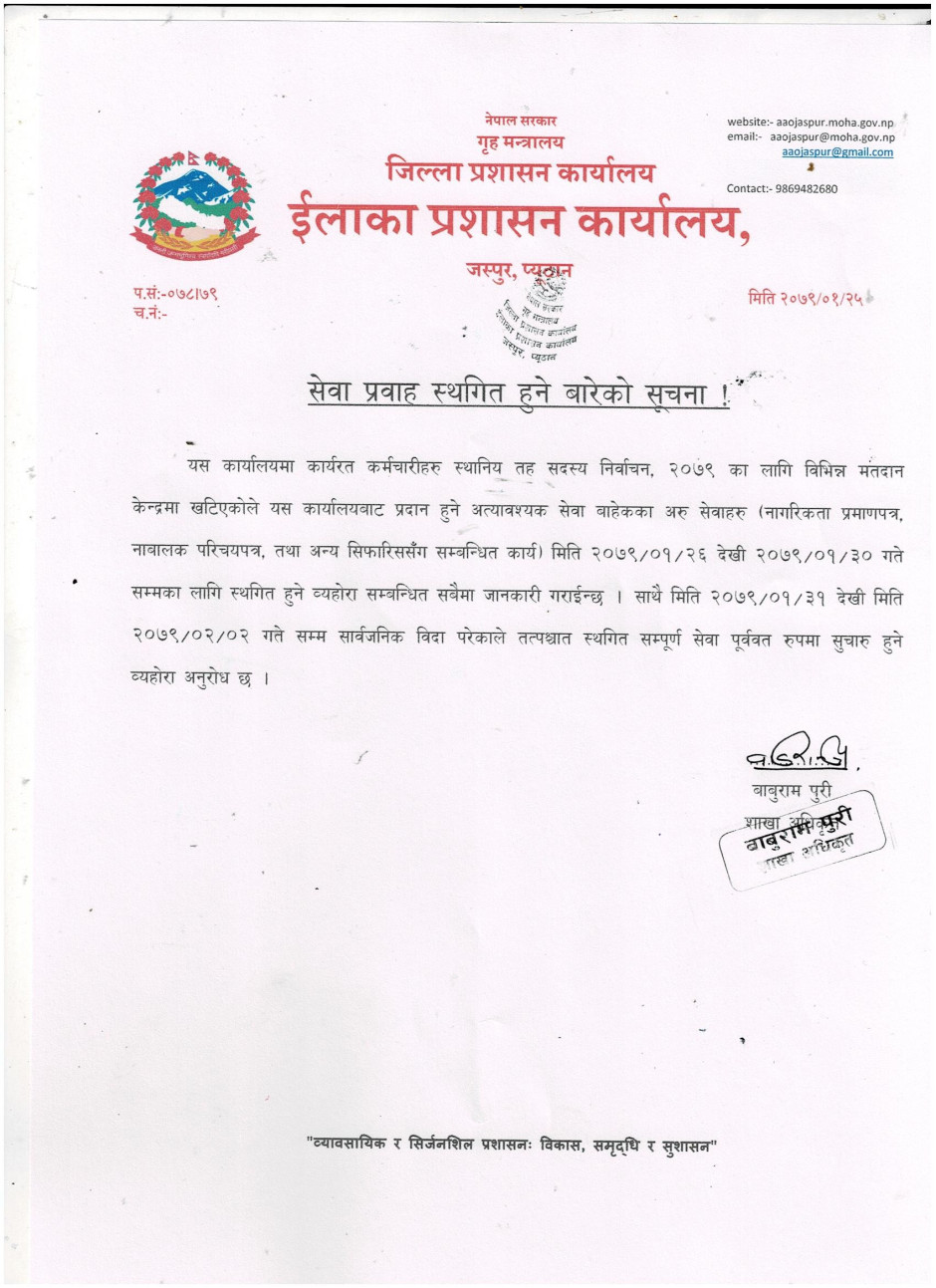 © सर्वाधिकार सुरक्षित ईलाका प्रशासन कार्यालय, जस्पुर, प्युठान