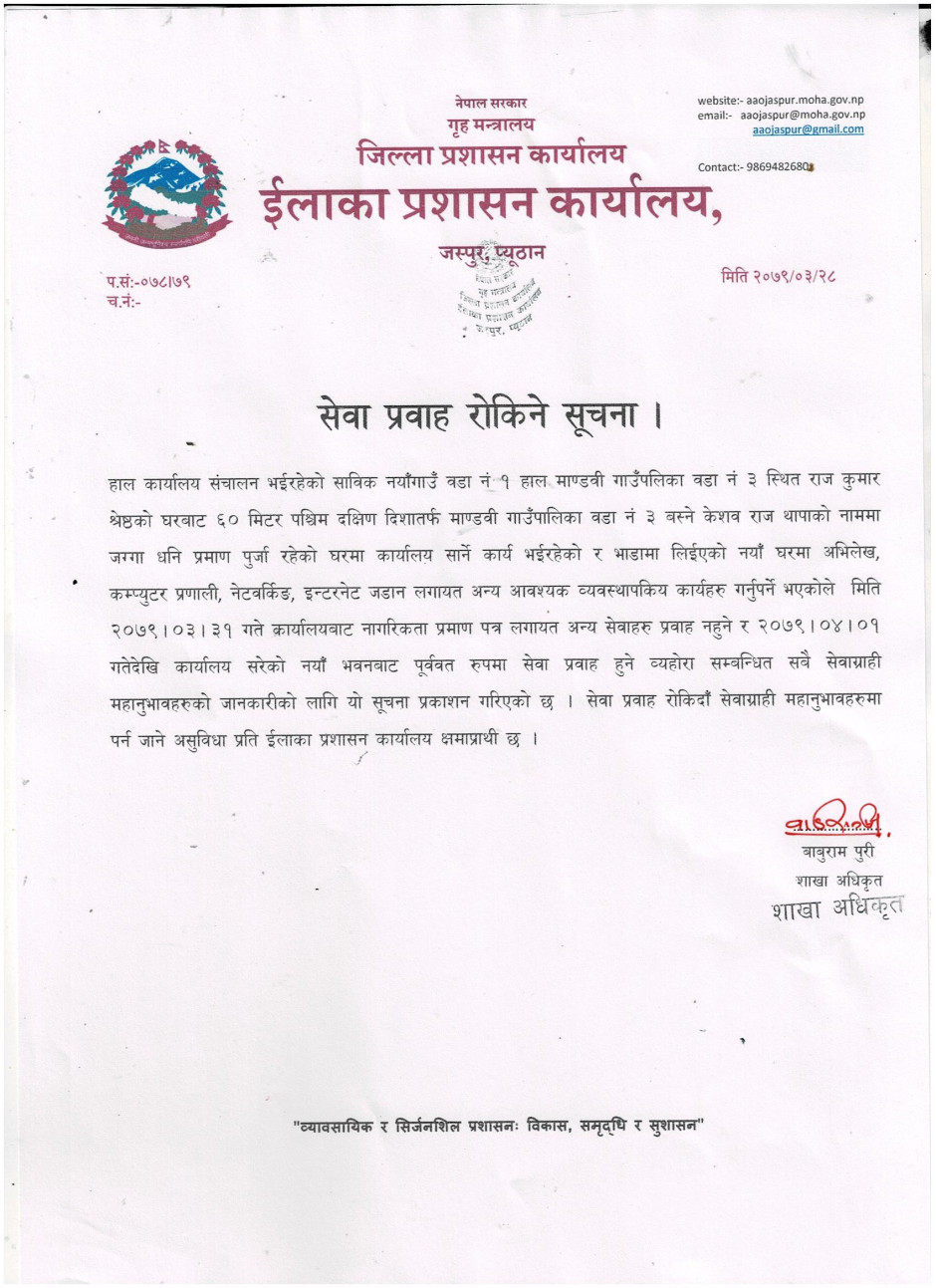© सर्वाधिकार सुरक्षित ईलाका प्रशासन कार्यालय, जस्पुर, प्युठान
