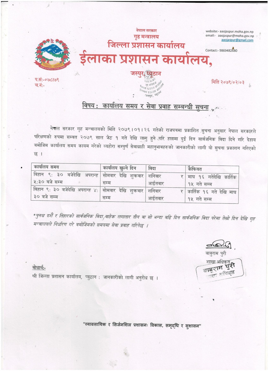 © सर्वाधिकार सुरक्षित ईलाका प्रशासन कार्यालय, जस्पुर, प्युठान